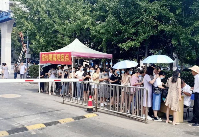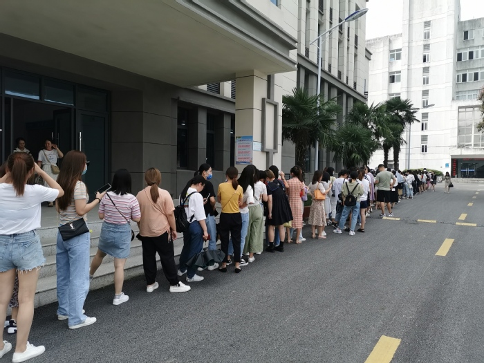 员工有序排队入校