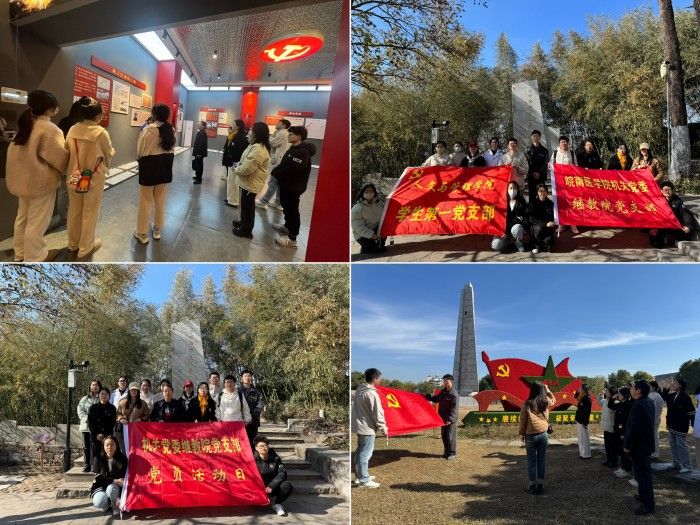 铭记历史,缅怀革命先烈。师生党员共赴繁昌县荻港镇板子矶爱国主义教育基地。在红色基地讲解员的引导下,党员们参观渡江战役展览馆,仔细观看战役中使用的轻重武器、弹药、通讯器材、军服及一些珍贵史料复制品和照片,共同追忆百万雄师过长江的英勇经过和渡江英雄们的革命事迹,共同感受了那一段炮火中热血与信念并存的红色记忆。随后,大家瞻仰了渡江战役第一船登陆点纪念碑;全体党员面对鲜艳的党旗庄严宣誓,再一次重温了入党誓词。