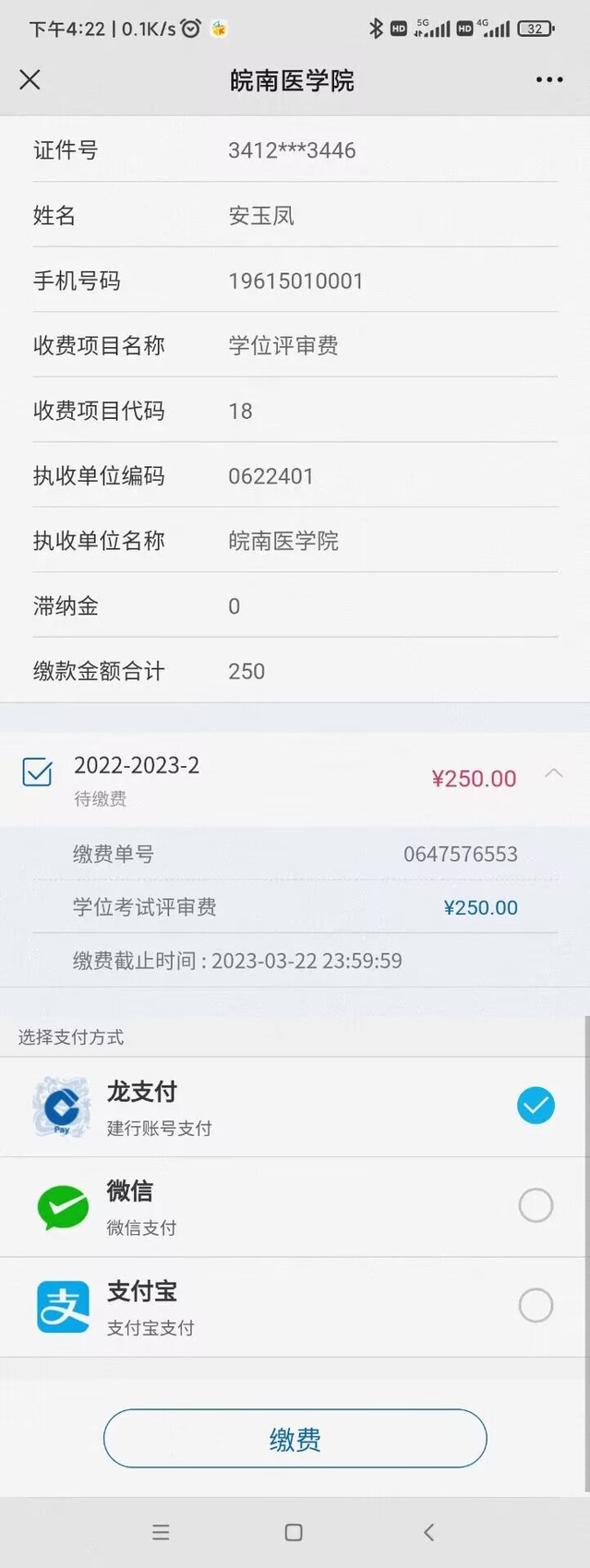 本次报名限在籍期间参加省学位英语水平考试或全国自考英语已合格的员工,请同学们将学士学位申请表及相关英语合格证书按时提交(届时注意看班级群通知),报名全部实行线上缴款,以员工完成缴费及相关材料提交视为报名成功。线上缴费具体操作步骤如下,请务必按照操作步骤缴费,过程中如遇到问题,请及时联系辅导员解决。