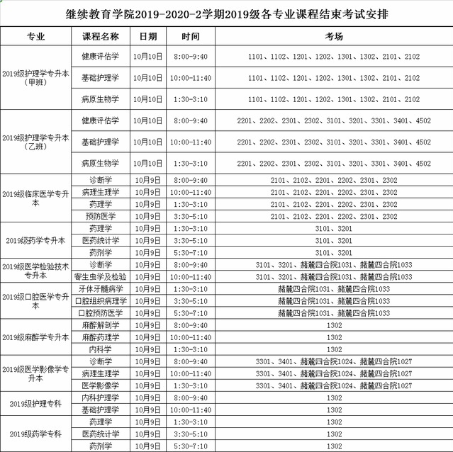 m88官网2019-2020-2学期2019级各专业课程结束考试安排