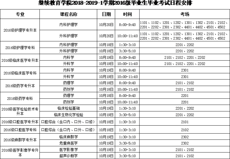 2019届(2016级)春季毕业生毕业考试安排如下:
