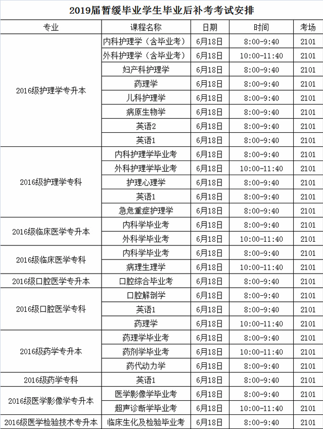 高等学历继续教育2019届暂缓毕业员工毕业后补考时间安排