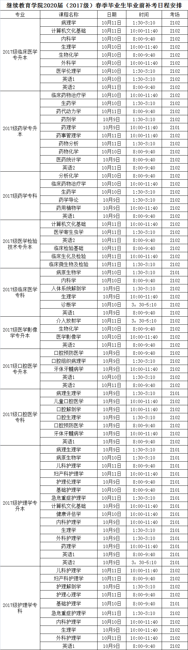 m88官网2020届(2017级)春季毕业生毕业前补考日程安排