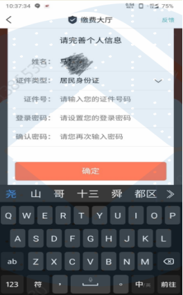 2、进入m88官网缴费大厅,完善个人信息(包含姓名、身份证号、登录密码)。